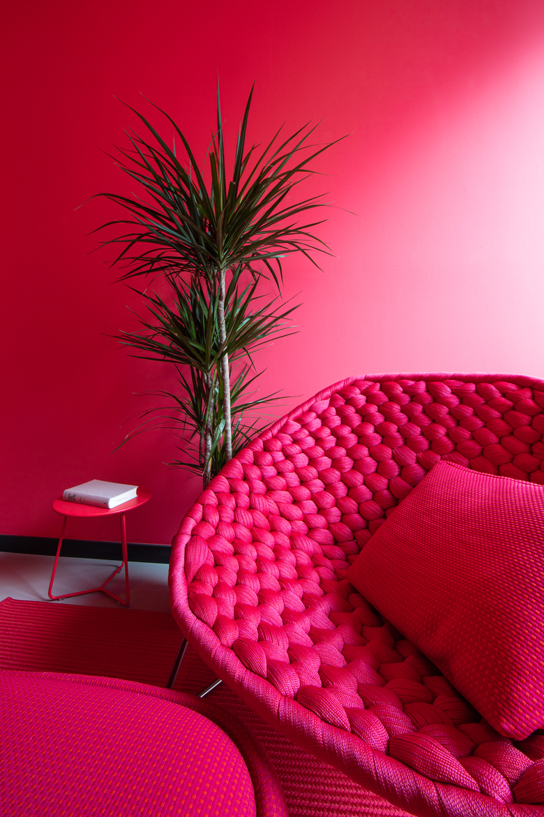 Knallige Corporate Farben in Kombination mit ausdrucksstarken Strukturen übersetzen die Marke Alteryx in den Raum und schaffen für die Mitarbeiter eine Identifikation mit dem Standort München als auch mit der Firma.