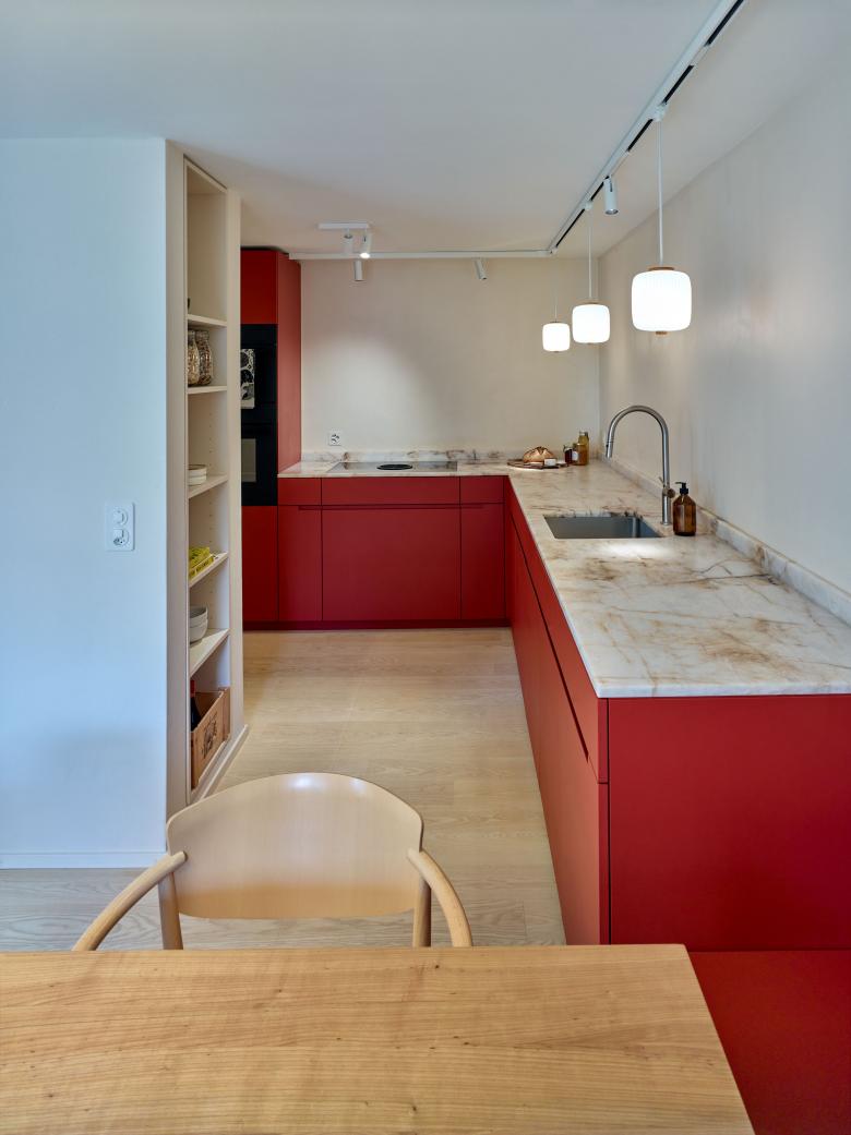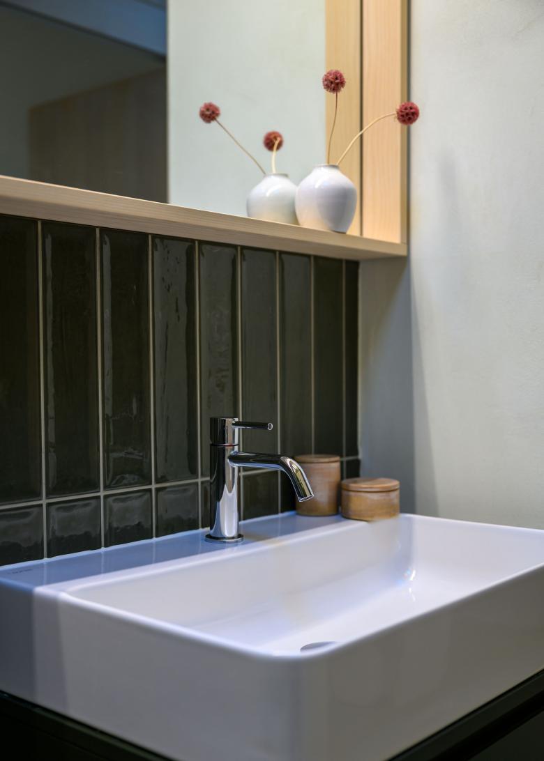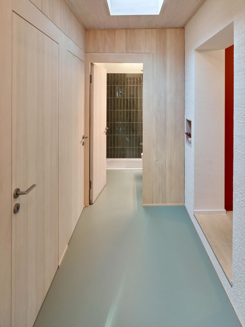 Aufeinanderabgestimmte Materialien und färben der Inneren Wohnoberflächen machen das kleine Reihenwohnhaus zu einem Bijou!