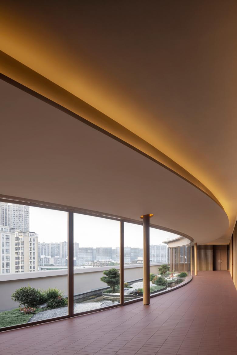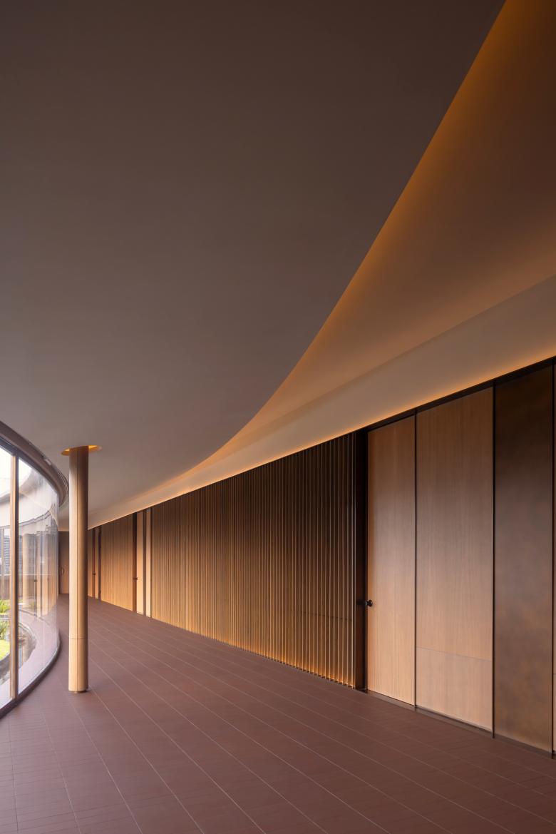 The circular foyer which is reached through a slender corridor, is the intersection of multiple functional spaces. The open functional layout allows dynamic and static scenes to interweave, forming a waiting and communication space on this floor. The circular foyer creates a multi-directional "transportation centre" to strengthen the connection between different spaces.