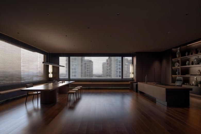The ANSAN Office + project is located on the top floor of a modern building in Shaoxing, where the ANSAN Hotel is located. The Greater Dog Architects design an office for the ANSAN hotel management team on the top floor, which is mainly used for reception, ne-gotiation, office, and leisure. Therefore, the designer trying to create an office and recep-tion space with hotel quality, showcasing the ANSAN team's pursuit of hotel brand de-tails through a space with a sense of quality.