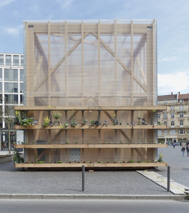 Der Architektursommer Rhein-Main (ASRM) 2015 bot eine Plattform für Ideen, wie die Region mit den Städten Offenbach, Frankfurt, Wiesbaden und Mainz zusammengestaltet werden könnte. Als einer der Vorsitzenden des ASRM 2015 hatte ich die Ehre, einen temporären Pavillon auf dem Goetheplatz in Frankfurt zu konstruieren, der als Speakers‘ Corner – ganz nach dem Vorbild im Hyde Park – genutzt werden sollte. Die aus Buchenbalken gebaute Rahmenkonstruktion wurde aus statischen Gründen mit Pflanzen beschwert. Die 16 Meter lange Toreinfahrt an beiden Längsseiten symbolisierte Offenheit und sorgte für regen Austausch.