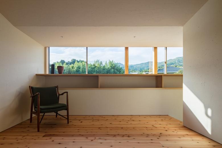 長らくこの場所で創作活動を行い、生活もしている2人にはルーティン化したふるまいが染み付いていて、今回の私たちの設計は、それらをよく観察し、新しい建物として写すこと(マニュスクリプト)であった。結果として東西に長いボリュームを長手に分節し、私的な場所をまとめた2層の主屋と、ギャラリー(玄関)ホール(リビング)を内包する下屋の構成が導かれている。