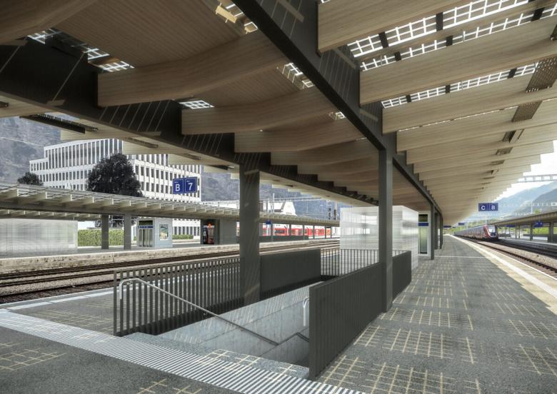 Das Fahrgastaufkommen am Bahnhof Landquart, dem Eingangstor zum Bündnerland, wird sich in den kommenden Jahren stark erhöhen. Ein neues gemeinsames Mittelperron von Rhätische Bahn und SBB erlaubt den direkten Umstieg zwischen den beiden Bahnunternehmen und damit die Umsetzung des angestrebten Halbstundentakts. Ausgehend von den 2009 auf dem Perron der RhB ausgeführten Dächern hat Penzel Valier dazu für alle Perrons neue einheitliche Dächer entwickelt. Holzträger werden durch weitgespannte Stahlträger gesteckt und bilden mit transluzenten PV-Anlagen eine lichtdurchlässige Dachstruktur, die zur nachhaltigen Stromproduktion beitragen. Breite und helle Personenunterführung verbinden die neuen Perrons. Für die sichere Bedienung der Gleise wird nach den Plänen von Penzel Valier zusätzlich am nördlichen Perronende ein neues gemeinsames Stellwerk erstellt.