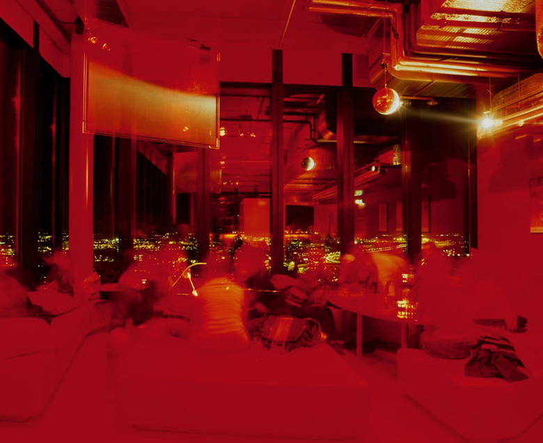 Alles ist rot – Tische, Bänke, Boden, Decke, Treppe und Bar. Bloss die Gäste und das Häusermeer von Basel, das sich vor den raumhohen Fenstern ausbreitet, heben sich vom monochromen Rot ab. Wer hierher kommt, schwebt – dem Alltagstrott entrückt – über der Stadt.