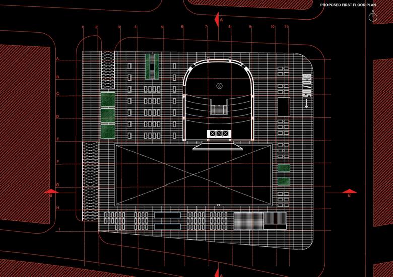 Beyond the perimeter fence we see today, the partial demolition of the complex has left the site of the City Center with far more than just the theater’s shell. Underneath and all around the theater lies a 6000-square-meter urban void. Amidst the congestion of the busy downtown area, the site should become a remedy for the cosmopolitan city absorbing the external fluctuating environment and complementing the neighboring action.