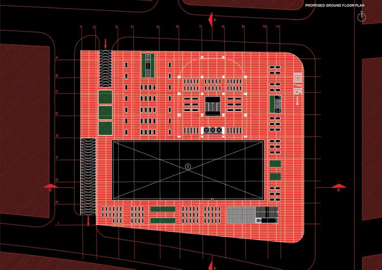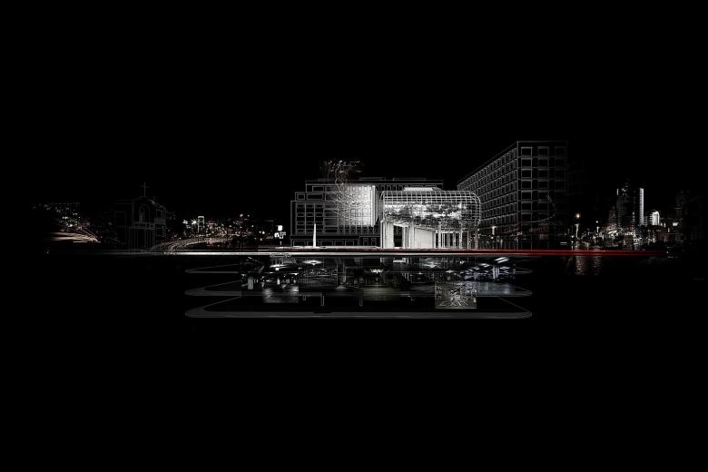 This rehabilitation project should not be regarded as a total renovation. Due to the required flexibility of the program, the fixed elements of the project are its infrastructure. Autonomous elements generated by potential and future operators will gradually inhabit the proposed open surfaces. The contemporary city is represented in terms of growth. The project has a symbolic role of demonstrating that urbanity lies in its process of making and remaking the city.