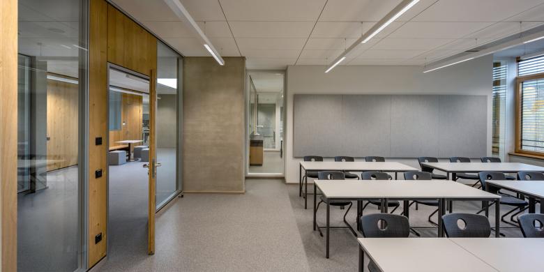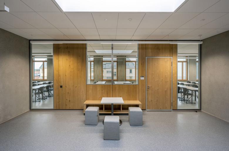 Das Lernhauskonzept bietet mehrere Möglichkeiten für zeitgemäße Lernkultur. Zentrum ist die jeweilige gemeinsame Mitte mit Möglichkeiten zur Begegnung und Austausch. Diese erweiterten Flächen der Klassenraumzone