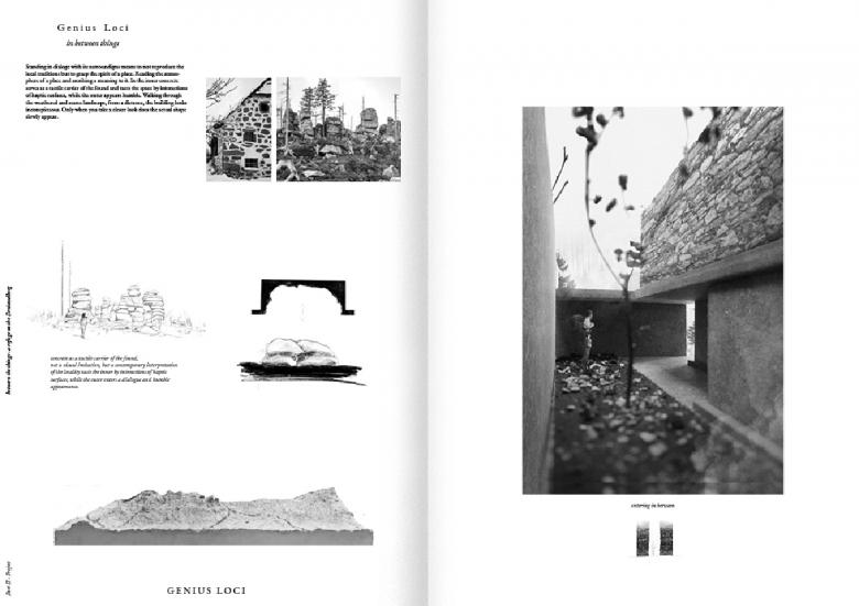 To feel at home at an unfamiliar place requires a sensible architecture, that concentrates on the dialogue between human and building. The theoretical part deals with the drafting of a personal design method, which makes use of phenomenological approaches. The second part puts the formulated method into practice, where the design begins first from the standpoint of the user and evolves further into a dialogue between inside and outside. The thesis and process roots in the master studio brief of a “thinking space”.