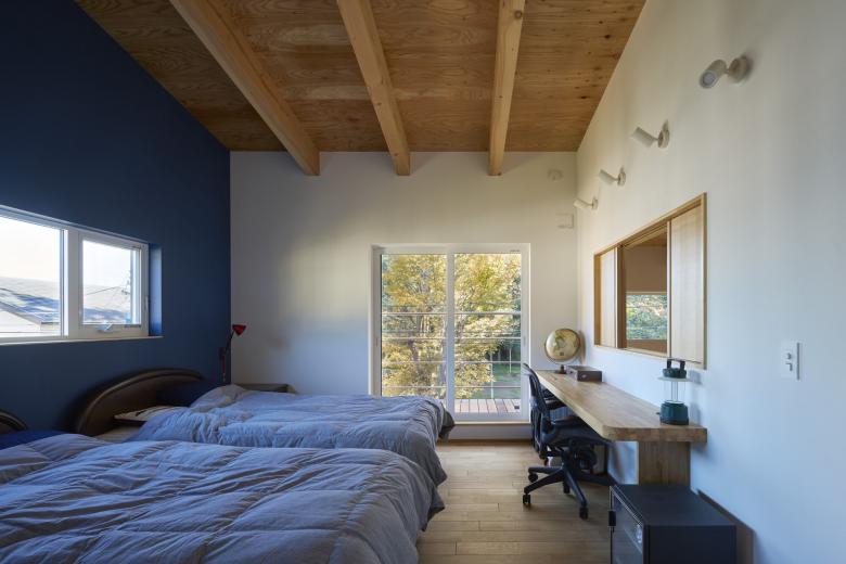 主寝室は2階にあるが、身体の自由が効かなくなった際には和室を使うことで、暮らしの全てを1階で完結できるよう配慮されている。