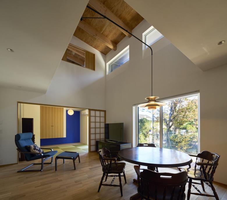 建築好きなご主人のご希望で、ブルーノ・タウトが好んだ青色がテーマカラーとして暮らしを彩っている。