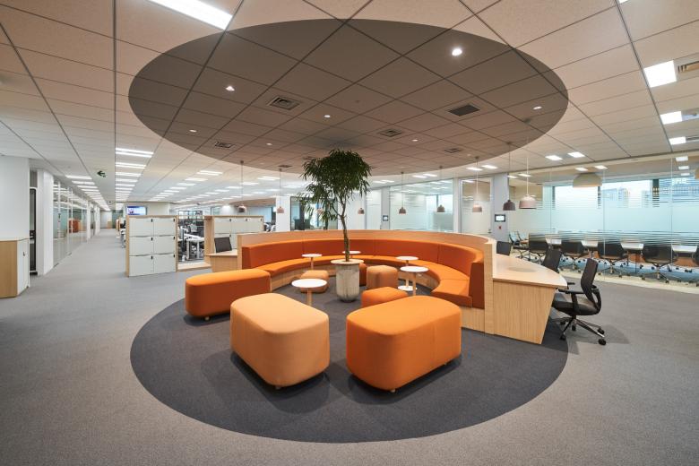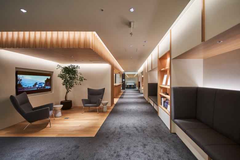 ABW(Activity-Based Working)の考え方をベースに構築したオフィス空間には、社員一人ひとりが気兼ねなく使えるコミュニケーションスペースを散在させることで、自然とコラボレーションが始まる状況をつくり出しました。また、自由で柔軟な働き方を可能とした新オフィスは、社員のパフォーマンスを最大限に高めるとともに、ワークライフインテグレーションの推進にも貢献しています。