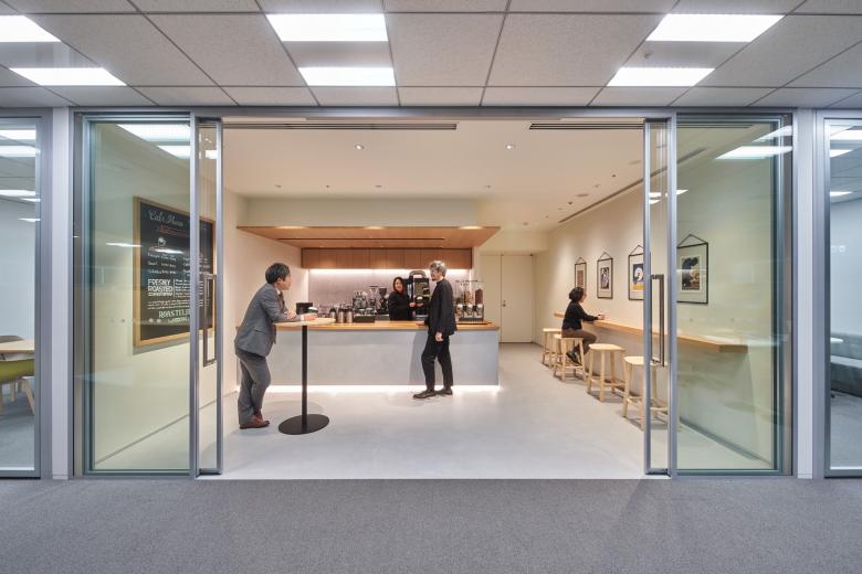同社が新たな拠点として選んだのは、美しい浜離宮庭園を臨む汐留という立地でした。モダンで効率的な働き方の形を意味するConnected Worksというコンセプトのもと、私たちデザインチームは、ハイブリッドかつ多様なバックグラウンドを持つ社員が、常にベストコンディションで働ける環境の提供を目指しました。
