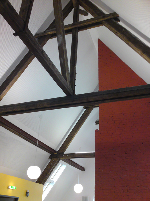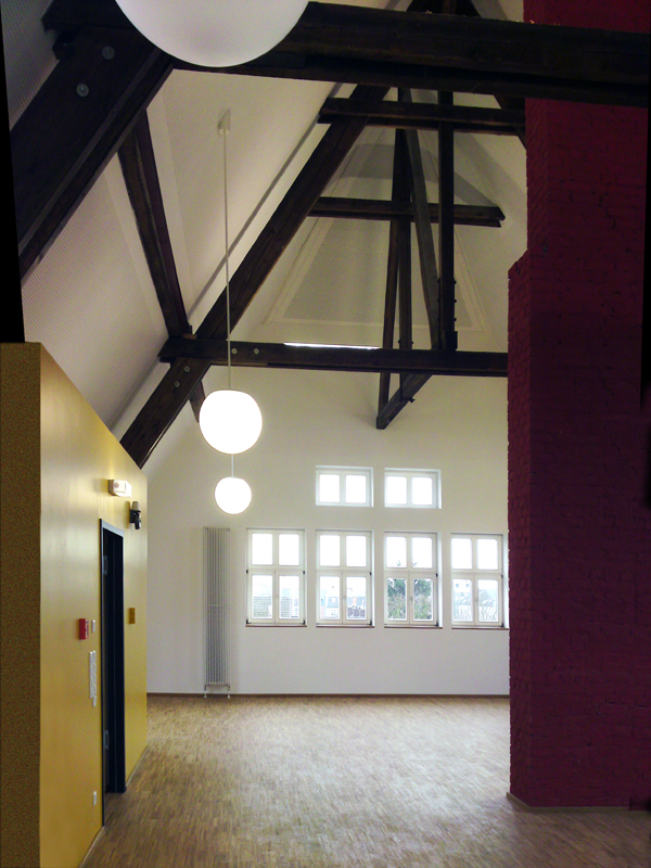 Die unter Denkmalschutz stehende Grundschule Burgunderstraße in Neuss aus dem Jahr 1906 hat ca. 250 Schüler. Für den Offenen Ganztag bedurfte es einer Erweiterung bestehend aus einem Mehrzweckraum einschließlich Sanitärräume. Darüber hinaus wurde für den gesamten Altbau ein neues Brandschutzkonzept gefordert. Statt einer Erweiterung auf dem Schulhofgelände haben wir den Ausbau des bis dahin völlig ungenutzten Speicherraums mit einem Volumen von 750m³ vorgeschlagen und den gesamten Altbau brandschutztechnich aufgerüstet.