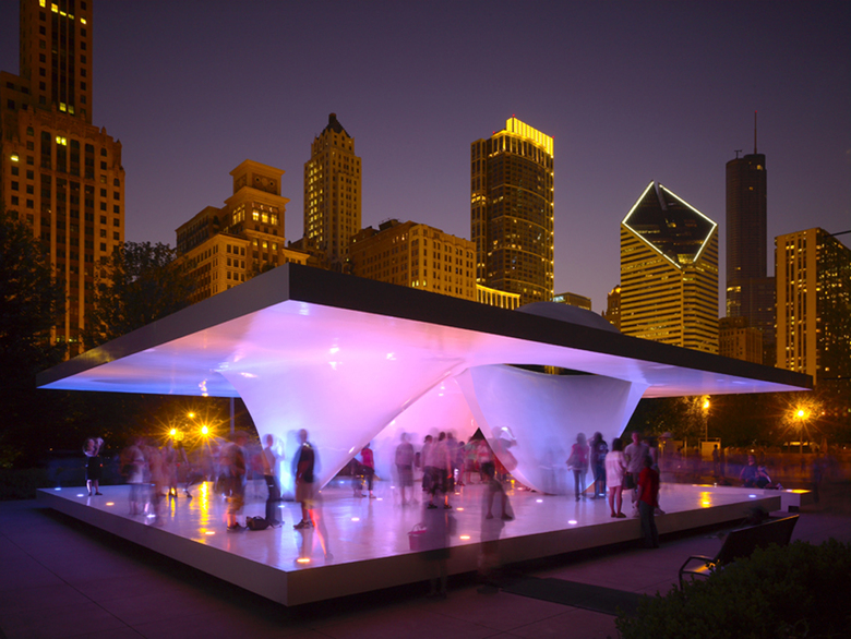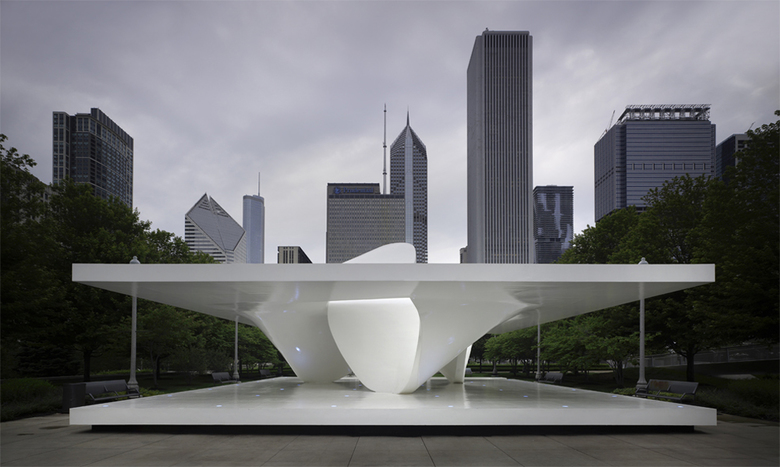 Placed on the unique location in the middle of Millennium Park framed by the Lake Michigan on one site and Michigan Avenue on the other, the UNStudio pavilion relates itself to diverse city-contexts, -programs and -scales. Programmatically the pavilion invites people to, gather together, walk around and through, to explore and watch. The UNStudio pavilion is sculptural, very accessible and it acts as an urban activator.