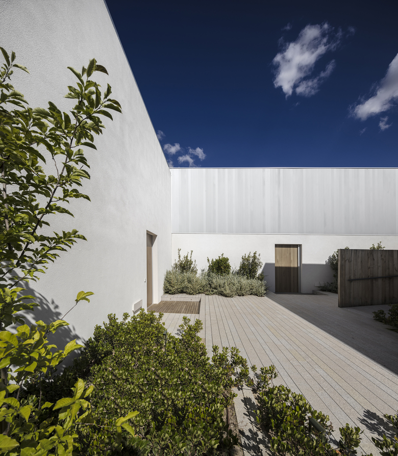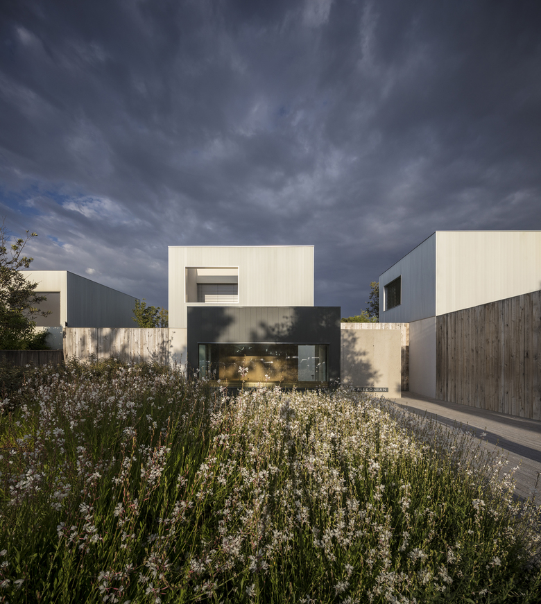 The architecture uses simple, industrial and monochromatic materials. Visually it is difficult to distinguish the unit from the group. The mini-wave and painted in white brick façades contrast with the wooden fences that delimit the paths. A rich and abundant landscaping permeates the entire lot and spreads on it in an organic way breaking the orthogonal angles of the volumes.
