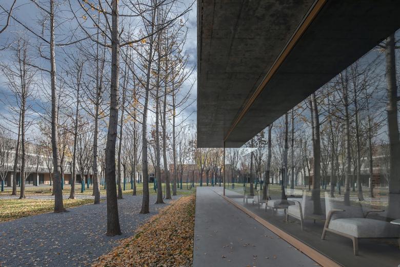 The Camerich furniture company has commissioned ZAO to convert a former industrial district in the southeast of Beijing into a new campus, with a park situated in the centre of the site. Grouped around it are offices, laboratories, production, a canteen, and housing for employees. In the western area, there is a long-stretched former factory hall that has been transformed into meeting rooms, office spaces and a prototyping workshop.