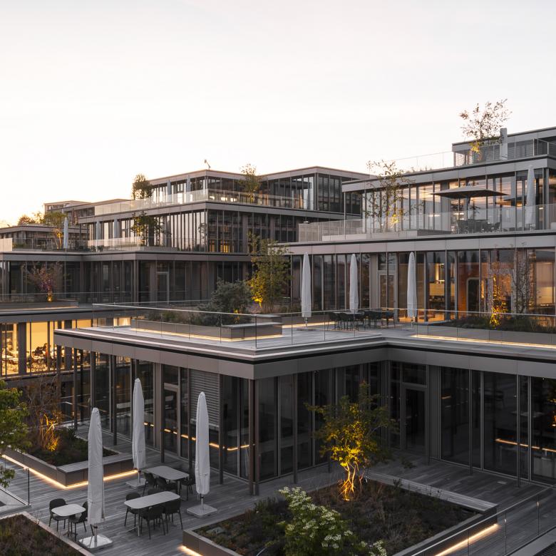 Les hauteurs d’étage de 4m, initialement prévues pour les laboratoires, sont maintenues, permettant d’offrir 30'000 m2 d’espaces de bureaux avec une spatialité généreuse, renforcée par un abondant apport de lumière naturelle.
