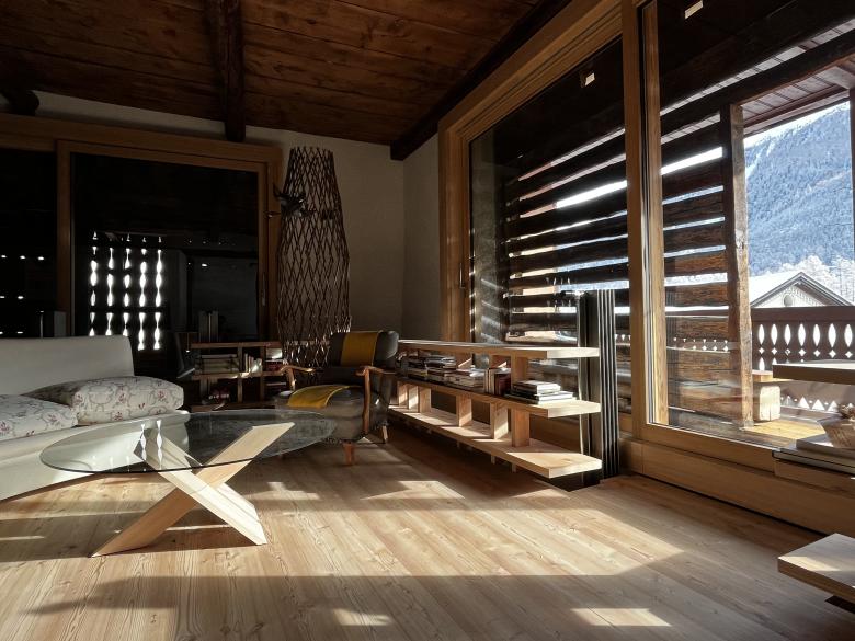 Die Renovation fügt eine neue Treppe in den Mittelbereich: die neue vertikale Erschliessung wird zum zentralen Element des Hauses. Die Treppe wird zusammen mit dem Podest als Arbeitstisch als Möbel in einer doppelten Höhe gestaltet. Ein neues Panoramafenster unterstützt diese Idee, als einzige Ausnahme in der einheitlichen Fassade.