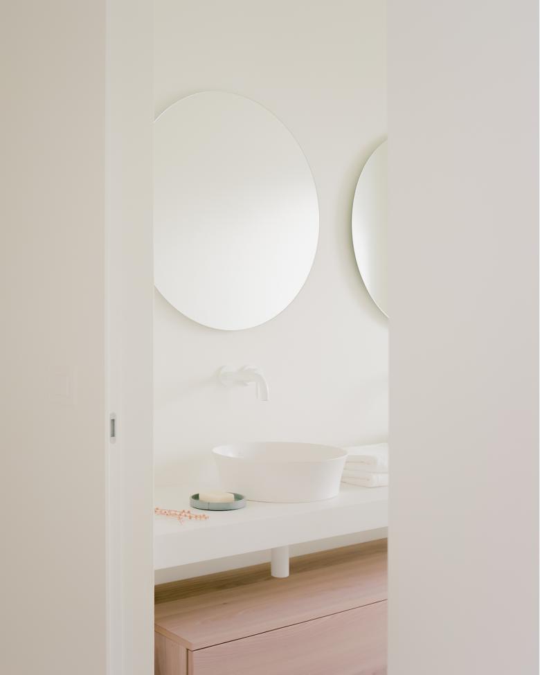 Gli spazi rituali del vivere domestico, instaurano relazioni intime e puntuali con l’esterno e sono organizzati lungo un asse visivo, che è anche percorso, che collega il patio interno della zona giorno alla camera da letto principale.