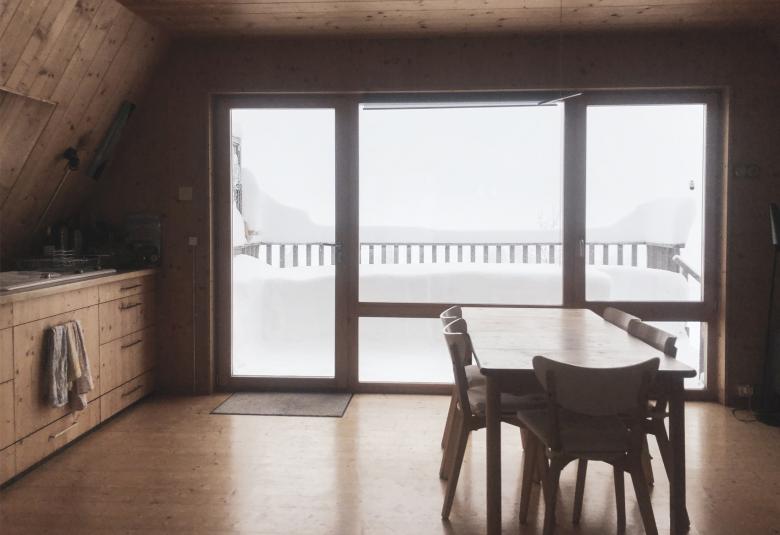 Mais à la copie conforme, les propriétaires préfèrent la version revisitée. Alors le projet se nourrit du vécu, en capte l’essence et la reformule plus ancrée dans son contexte si particulier. Dans le nouveau chalet, les Alpes et le Jura se donnent la main. Il s’enrichit de leurs présences et chacun de ses espaces tient ses spécificités d’un rapport à un paysage différent: la lumière filtrée par la claire-voie pour l’entrée, la frondaison toujours verte des sapins pour le coin repos, la combe pour la cuisine, l’horizon alpin pour la zone de vie... Ils sont tous soigneusement articulés par une circulation les traversant en spirale, montant, comme la chaleur du poêle, de la cave aux chambres dans les combles.