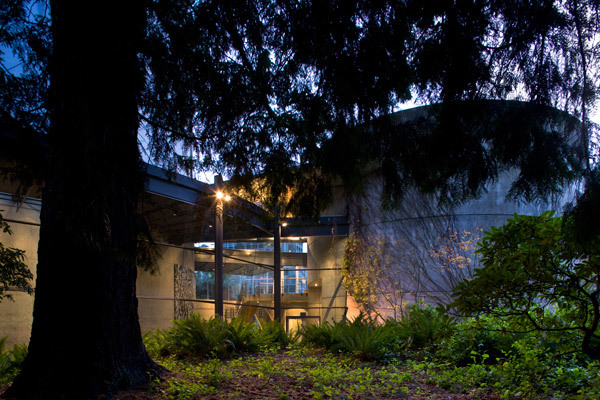 Among the many challenges of designing the Chan were a restrictive budget, which led to the creative use of a limited palette of concrete and wood; intense acoustical requirements, which resulted in the creation of a 37-ton acoustical canopy that gives the Chan Shun concert hall enormous flexibility (and which has been copied around the world); and the building’s size – more than twice the height of other buildings on campus – which the architects camouflaged by convincing the school to allow them to retain the forest of mature cedars, firs, azaleas and rhododendrons and to site the building within this sylvan setting. In spite of these challenges, the resulting building has been called one of the world’s best concert halls and has been compared to a musical instrument by many of the musicians who have played there.