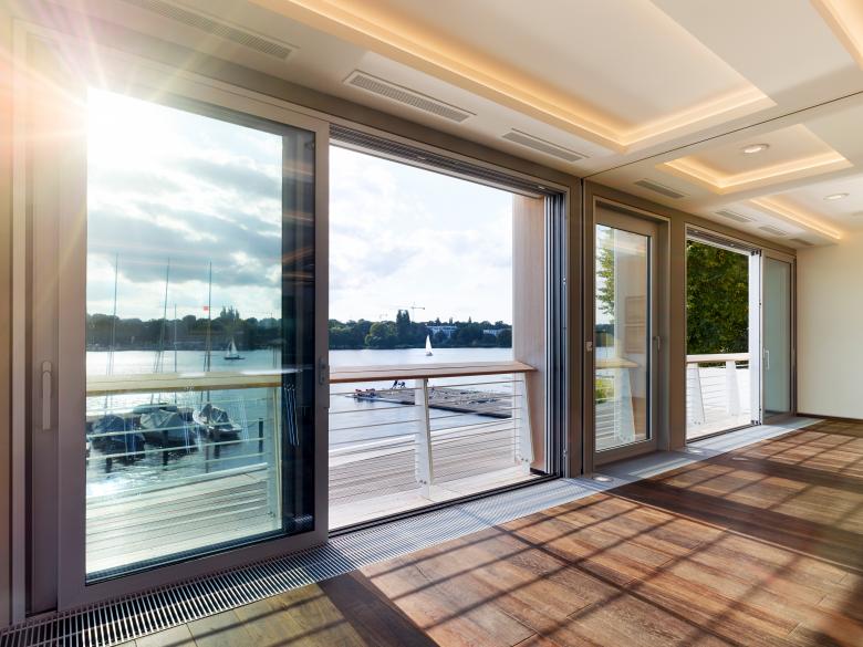 Da das Untergeschoss unterhalb des Wasserspiegels der Alster liegt und in den dort angeordneten Archiven alle Dokumente des Traditionsclubs gelagert werden sollten, war dieses unbedingt vor eindringendem Wasser zu schützen. Um dies zu gewährleisten wurde eine Wanne aus wasserundurchlässigem Beton erstellt, welche zusätzlich vollflächig mit einer Tricosalfolie beschichtet wurde. Durch diese Technik werden die Aufzeichnungen optimal geschützt. Die Lage unterhalb des Wasserspiegels machte des Weiteren eine Spezialgründung notwendig. Dafür wurden Spundwände gestellt und eine Sohle aus Unterwasserbeton gegossen, welche mit 14 Meter tiefen Bodenankern gegen Aufschwimmen gesichert wurde. Äußerlich besticht das Clubhaus durch zurückhaltende Eleganz. Durch die großen Glasflächen öffnet sich der Verein nach außen und wirkt dank der zahlreichen Holzelemente warm und einladend. An den Oberkanten der Fenster läuft die Betonfassade rund in die Laibung, welches einen optimalen Lichteinfall in die Räumlichkeiten ermöglicht. Hierfür wurde 1,3 cm starker Glasfaserbeton verwendet, welcher ein harmonisches Miteinander mit den Teakholzrahmen der Fenster eingeht. Auch auf den Brüstungen der windschnittigen Terrassengeländer wurde beständiges Teakholz verwendet, so dass noch zahlreiche heranwachsende Generationen von dort die Segeljachten bewundern können.