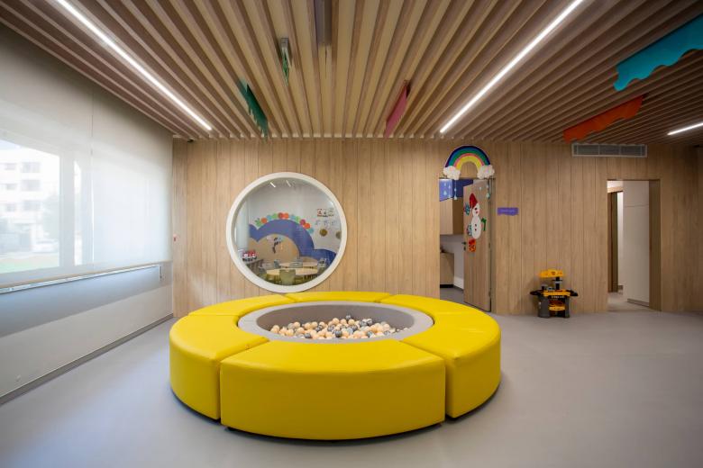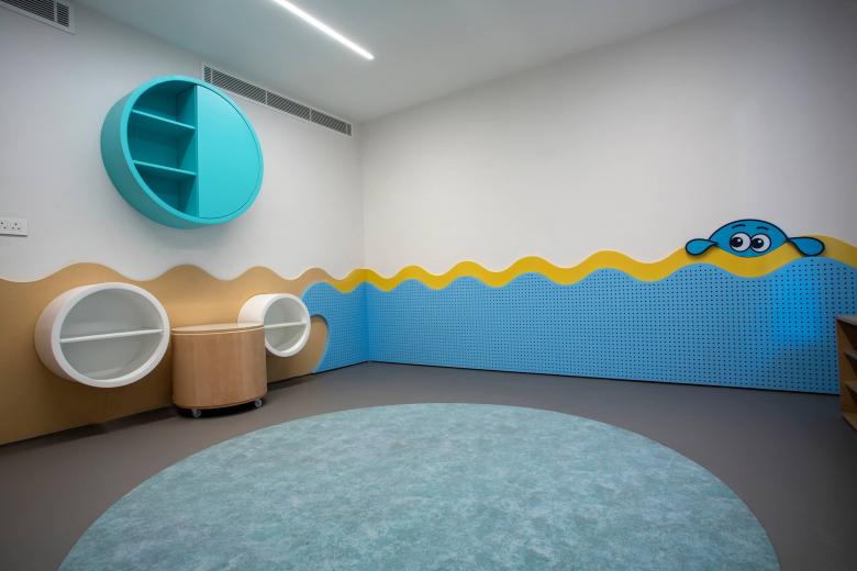 Across both indoor and outdoor areas, the design prioritizes continuity and flow, encouraging movement, exploration, and comfort. The result is a cohesive educational environment that balances strong visual character with everyday functionality, supporting both structured learning and playful discovery.
