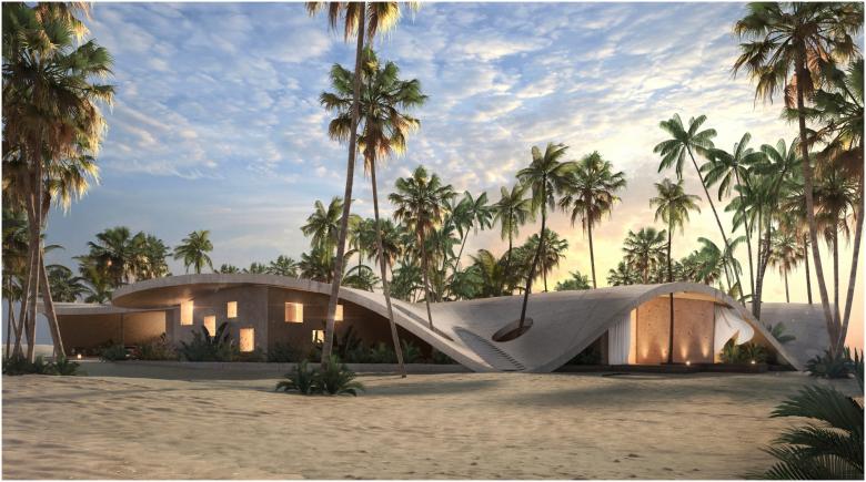 The main objective was to create an architecture that blends in with the environment due to its morphology and its materials and colors. In this way, the roof folds following the undulations of the desert dunes creating a merge of the desert. It is perforated in each private unit in order to observe the sky. The construction takes place around a private oasis exclusive to the hotel.