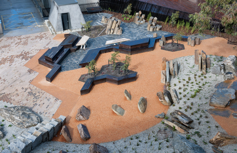 Each rock type is representative of different formations and geological age. The angle, orientation, and specific placement of approximately 500 rock specimens tell a local geological story, while the larger arrangements create a diverse series of landscape spaces. Feature rocks, stone pavements, gravels, mulches and plantings all echo the environments of specific regions of Victoria. Forms and shapes collide, creating difference and roughness at boundaries and edges. The effect is more ‘national park’ than curated display garden.