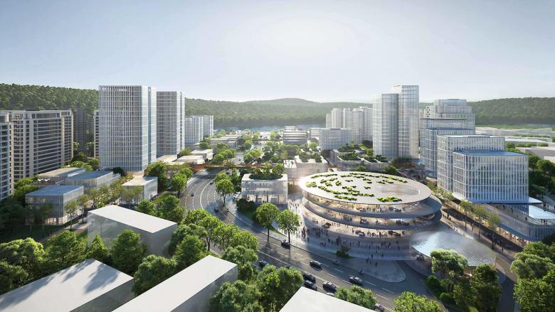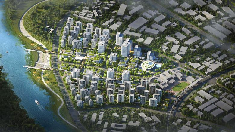 叠术建筑和绿城利普(联合体)受邀参加了位于福建省南平市北部武夷新区崇阳溪沿岸的月亮湾金融产业小镇的投标。 本项目主要为多功能商业园区提供生态景观。