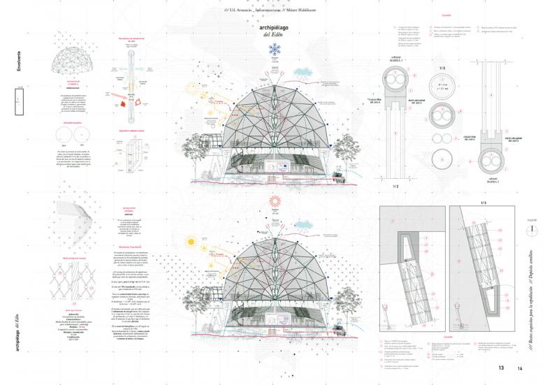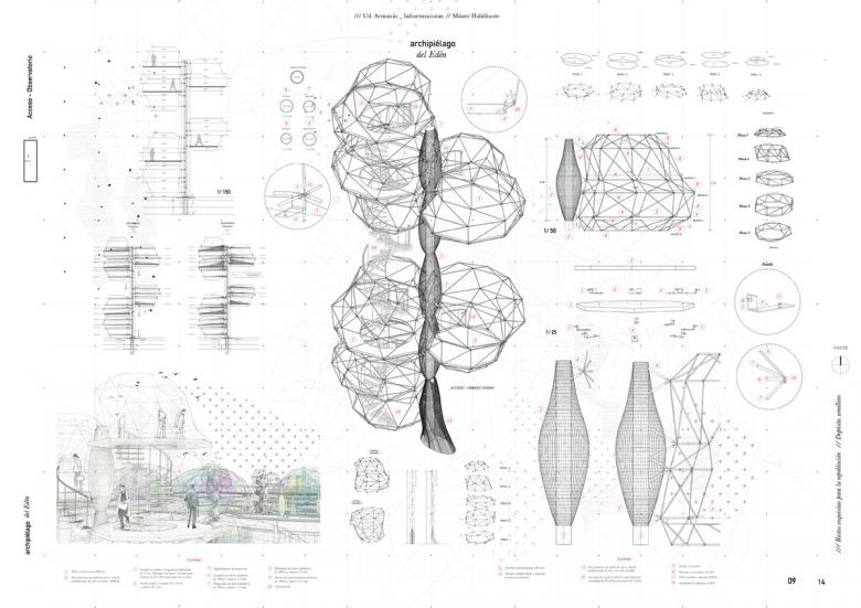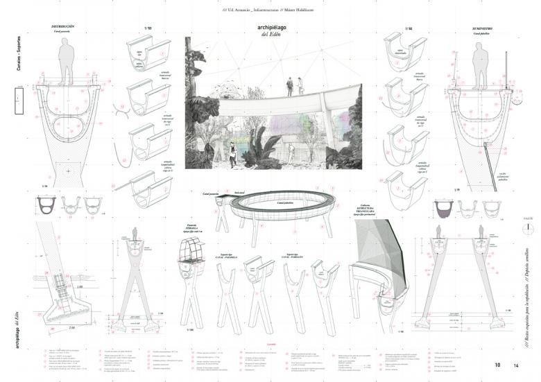 The location of the project, close to the Retiro Park and the exposure on the slope towards the urban fabric, makes the concept of rus in urbe fully usable, proposing a more ambitious project that collaborates with the future repopulation of Madrid with floral species and trees creating in turn, an ecosystem for the birds that nest in the Retiro Park in the midst of urban densification, and that seek to look out and observe. Therefore, the main purpose will be to flee from the typology of rectangular greenhouse buildings that are laid directly on the ground, for a project in charge of a landscape and an architecture that houses the crops, which will work from canal water based on the idea of ​​the old Aflaj irrigation and supply system. The project is born from what already exists, from that topography that contains the root crop and a path that surrounds it. New paths appear that have the shape of the folds of the land where the outdoor nursery crop will be located. The route that was made between the crops, now becomes something physical with the catwalk in charge of showing them from a previously unknown point of view. In addition to transforming it into a place for contemplation and recreation, the recovery of this hillside with a drop of up to 20 meters is carried out, which is concealed spread over an area of ​​4 hct, in which the circulation of water in the channel at constant height is resolved with flow regulators and pillars every 40 meters. As a challenge to solve, it was necessary to find a construction capable of serving as a greenhouse infrastructure based on a pre-existing crop footprint, with concrete pillars two by two, a hanging structure on the roof and adaptable to the variation of terrain. An architecture that works with a mechanized nature: the sun, the air and the light are controlled at the service of this archipelago of pavilions that work from water as self-sufficient cisterns. The design will respond to the thermal needs of the Madrid year in the Retiro area, trying to be the most stable despite the fact that each one needs specific conditions added to the cultivation or use program that they contain.