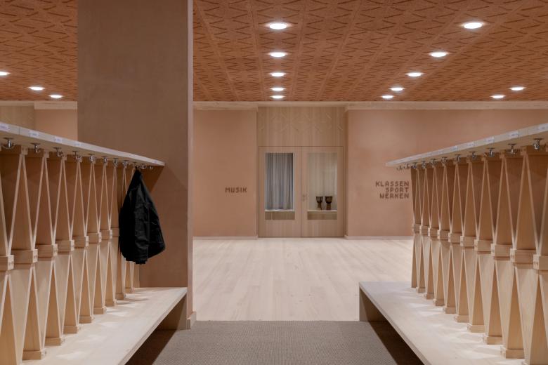 Denn auch im Inneren verbindet das Gebäude zwei scheinbare Gegensätze: Autonomie und Gemeinschaft. Jeder Bereich bleibt funktional eigenständig, mit klar zugeordneten Räumen und Abläufen. Gleichzeitig ermöglichen interne Verbindungen, Blickbeziehungen und Übergangszonen immer wieder Begegnung, zwischen Klassen, zwischen Kindergarten und Schule, zwischen den Altersgruppen.