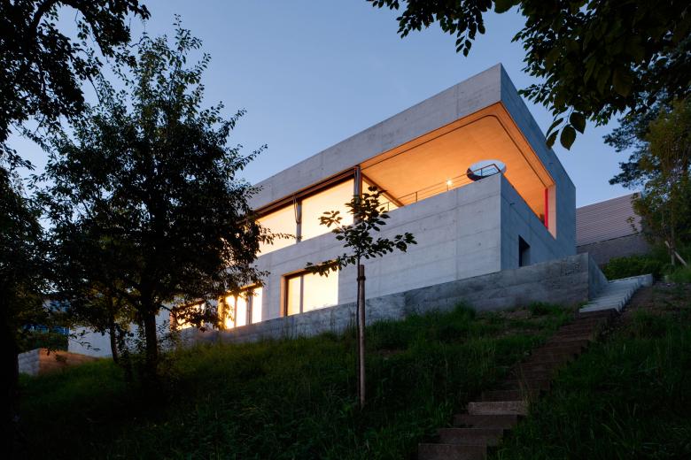Auf den Fundamenten des alten Hauses entsteht ein neuer Baukörper, der durch seine Ausrichtung Bezug nimmt auf die Lage des Grundstücks mit seiner Aussicht auf Alpen und Greifensee. Als Bewohner des Altbaus konnte die Bauherrschaft die Qualitäten und Mängel des bisherigen Hauses genau aufzeigen. Durch das Verschieben des Zuganges zwischen Haus und Garage werden neue Ausblicke frei, die Erschliessung im DG wird dadurch grosszügiger und der Elternbereich privater. Die hangseitig vorhandenen Räumlichkeiten im Untergeschoss werden leicht vergrössert. Das Erdgeschoss gewinnt durch den grosszügigen Wohn-, Ess- und Kochbereich enorm an Qualität. Die räumliche Beziehung zwischen der Abendterrasse, dem Innenraum und dem Morgensitzplatz wertet die Wohnqualität enorm auf.