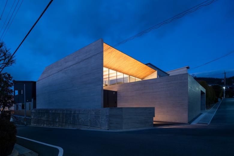敷地は京都南部の閑静な住宅地。2方向の道路に面したL型の敷地には高低差があり南北に異なるファサードが存在します。