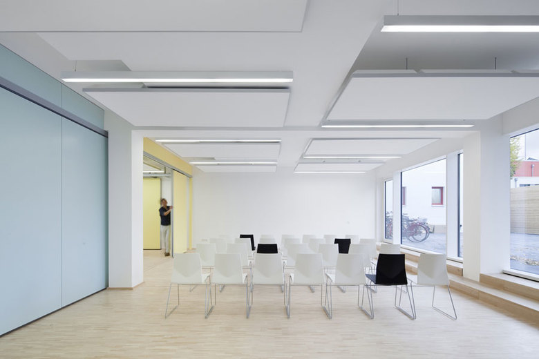 Der große Gemeindesaal ist teilbar und so für unterschiedliche Gruppengrößen nutzbar. Der flexible Foyerbereich kann bei größeren Veranstaltungen als Kirchencafé genutzt werden.