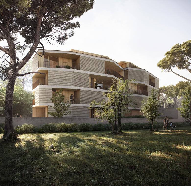 The project is Roman in character, in terms of both materials and form: the yellow-brick construction and travertine refer to the local tradition, and the form, made up of articulated volumes with a polygonal layout, is inspired by Capitoline Baroque research. The project also redevelops the outdoor space by eliminating the portion currently paved and transforming it into a planted garden, so as to restore greater permeability to the ground and relate to the existing extensive vegetation, which prevents the projection of sunlight on the facades due to its height.