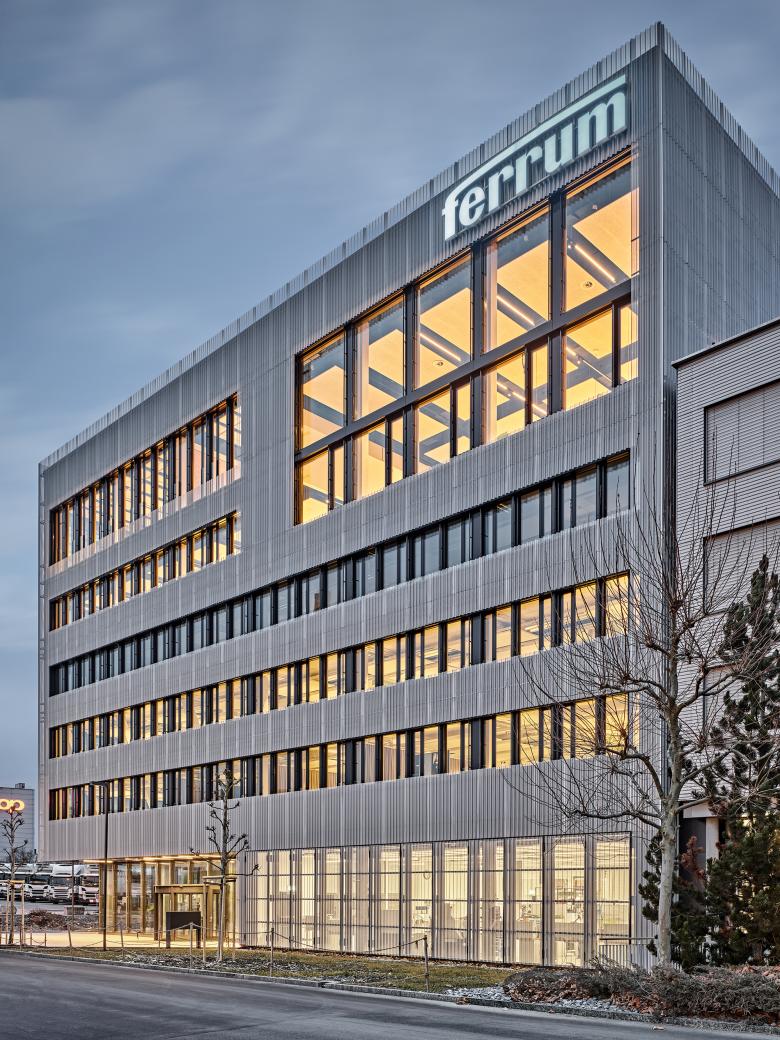 Der Erweiterungsbau des neuen Produktions- und Hauptsitzes der Ferrum AG sieht ein 25m hohes Gebäude vor, in dem die Produktions-, Lager und Logistikflächen vertikal gestapelt angeordnet sind. Oberhalb der Produktionshallen befindet sich aufgesetzt eine weitläufige horizontale Bürolandschaft mit Dachgärten, Patios und Terrassen.