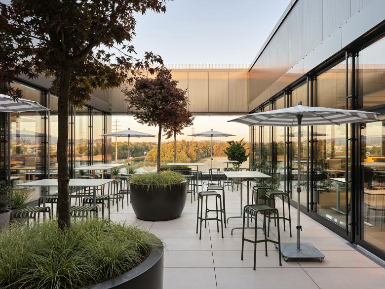 Einem qualitativ hochstehenden Aussenraum und der Bereitstellung von grünen Ruhe- und Aufenthaltsbereichen in den Innenhofwelten wird in dem industriell geprägten Kontext entlang der Fernstrasse A1 ebenso ein hoher Stellenwert eingeräumt.
