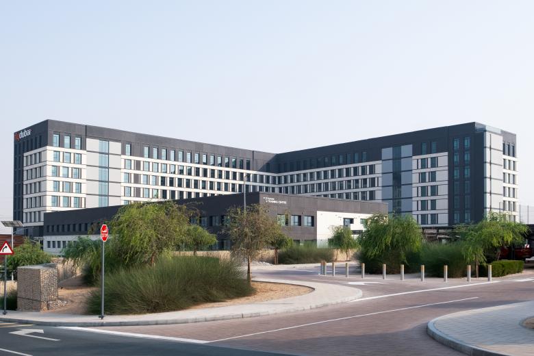 Strategically located along Emirates Road, the headquarters is positioned between Dubai International Airport and Dubai World Central, reinforcing its role as an operational hub. The building is organised as an L-shaped volume that brings together offices, training facilities, shared amenities, and support functions within a cohesive spatial framework.