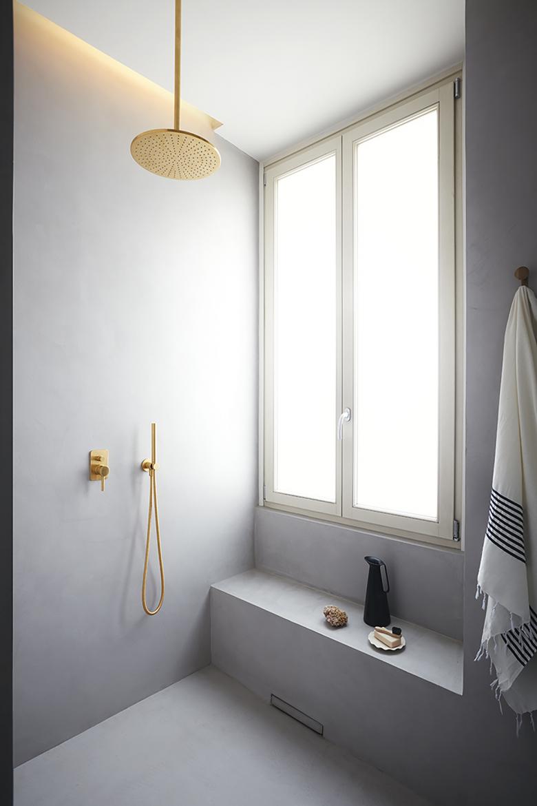 The intention was to bring the concept of intimacy to its most original state through the use of natural materials such as the Soleto stone in the bathroom, in the specially designed washbasin, and textiles such as linen and bouclè wool for the custom-made designed sofa. Finally, the lighting project was conceived in a dual way: a scenic light that creates emotion and a more functional technique.