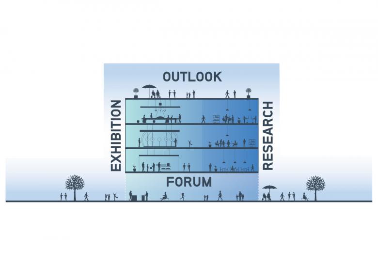 Mit dem Forum Deutsche Sprache entsteht in Mannheim ein einzigartiges Gebäude – zugleich Museum und Science Center –, in dem Wissen schaft und Gesellschaft in Dialog treten. Das Gebäude wird dem Leibniz-Institut für Deutsche Sprache als Ausstellungsraum wie auch als interaktive Forschungsfläche dienen. Es schafft einen öffentlichen Ort der Begegnung, an dem die Erfahrung von Sprache, ihre Allgegenwart und Vielfalt, durch interaktive Präsentationen, Diskussionen und kontinuierliche Forschung erlebbar wird.