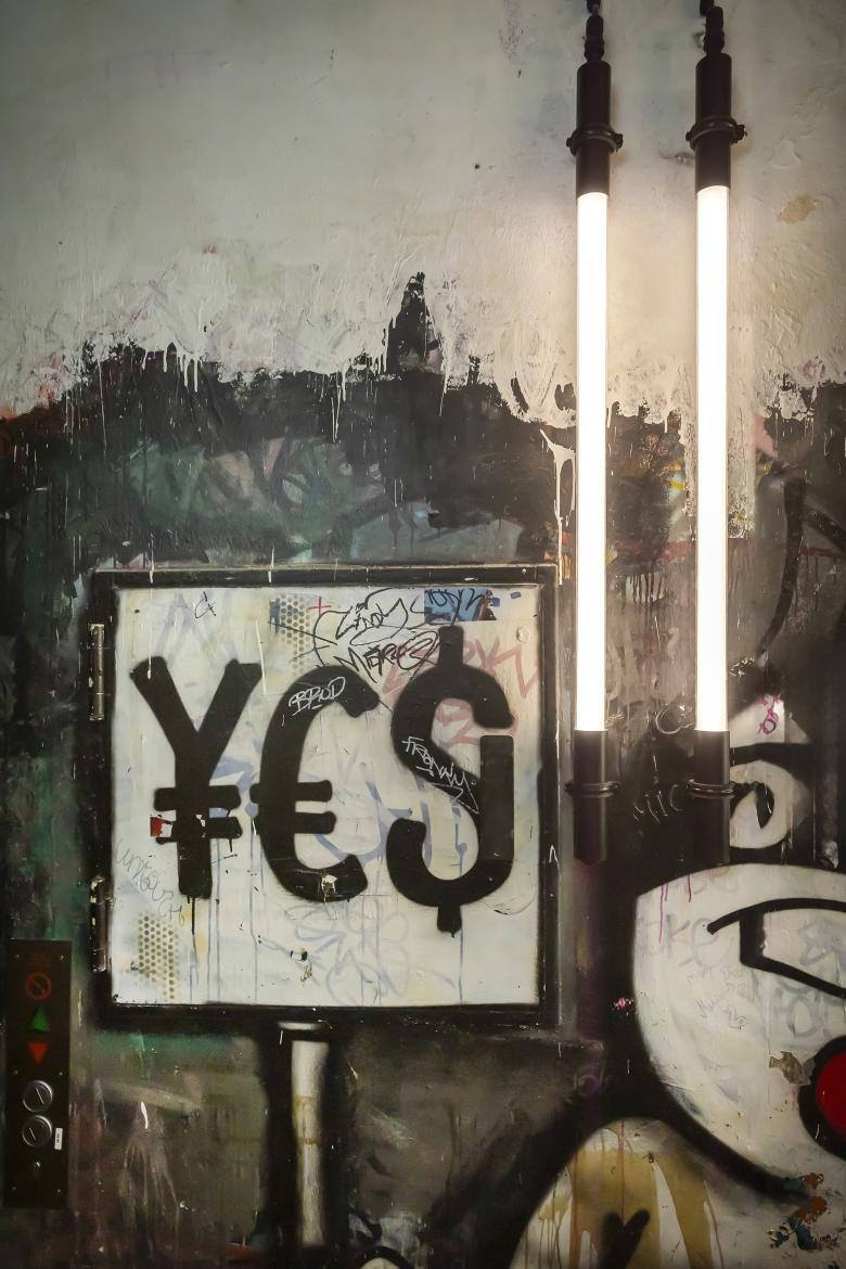 Flur mit Graffiti und Leuchten