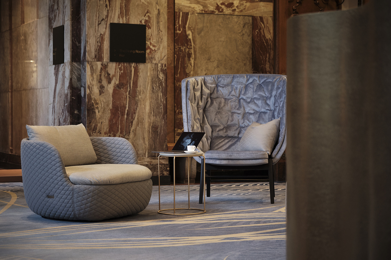 Eine Zeitreise mit unterschiedlichen Stationen: Die denkmalgeschützte Immobilie der ehemaligen Oberfinanzdirektion wurde durch die Umnutzung zum Luxushotel mit einem komplett neuen Fokus wieder wachgeküsst. Die Innenarchitekten entwickelten ein Konzept, das als Hommage an den Lebensstil der 20er Jahre erinnern soll und somit an die Ära der Entstehungszeit. Inspirationen dazu gaben kleine Entdeckungen aus dem Bestand im Art Déco Stil, die dem bestehenden Gebäude von 1910, das ursprünglich nicht als Hotel konzipiert wurde, eine gewisse Leichtigkeit und Eleganz einhauchen. Beim näheren Hinsehen entdeckt man auch weitere Anklänge an die 50er Jahre, die auf die Zeit des letzten größeren Umbaus nach dem Krieg verweisen. Durch die Innenarchitektur werden die verschiedenen Epochen wieder zum Leben erweckt, miteinander verbunden und sensibel in die Neuzeit transportiert.
