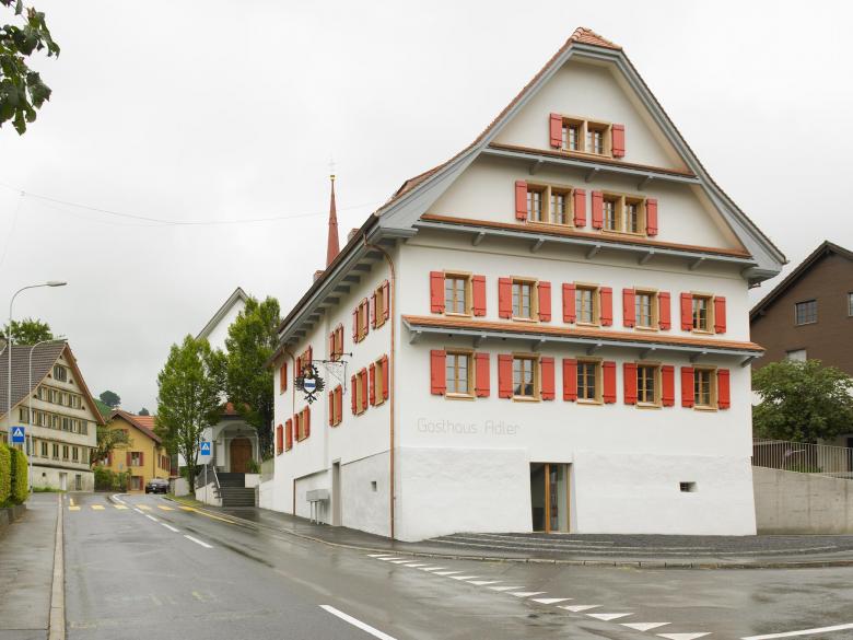 Das Zentrum von Allenwinden bildet ein Quartett von Bauten aus dem 18. und frühen 19. Jahrhundert. Im 20. Jahrhundert erlitt der Adler unstrukturierte Umbauten und verlor damit seine ursprüngliche Majestät. Die Korrektur beinhaltete den Rückbau sämtlicher fremder An- und Zubauten. Diese wurden jedoch in einem Neubau volumengleich zur Kirche hin kompensiert. Auf diese Weise konnte die Westfassade, die mit ihren Chläbdächern und dem regelmässigen Fensterraster für das Ortsbild prägend war, wieder hergestellt werden.