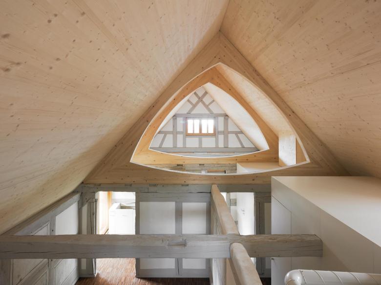 Das traditionelle Gasthaus erhielt eine Restaurant- und Kücheninfrastruktur nach heutigen Anforderungen, darüber wurden zwei altersgerechte Wohnungen und im Dachgeschoss die Wirtswohnung erstellt. Sämtliche bisher verborgenen Fachwerkkonstruktionen mit Bemalungen wurden aufwändig saniert und in den neuen Wohnungen sichtbar gemacht.