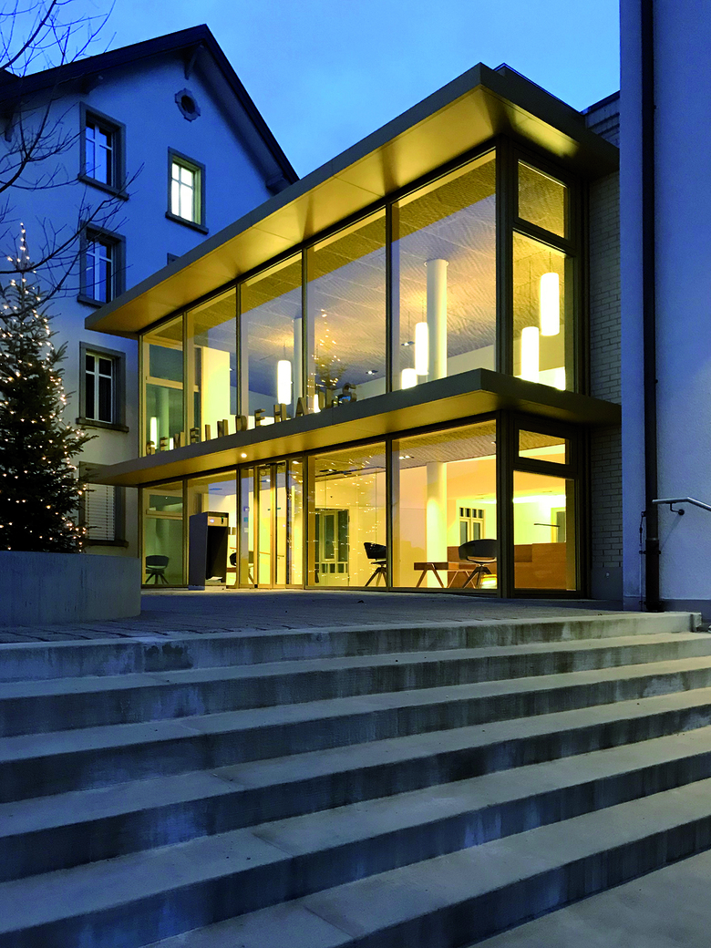 Mit der Neugestaltung des Empfangsbereichs wurde das Potential des Mittelbaus optimal genutzt. Dazu wurden folgende drei Hauptinterventionen ausgeführt: