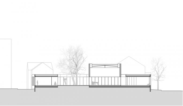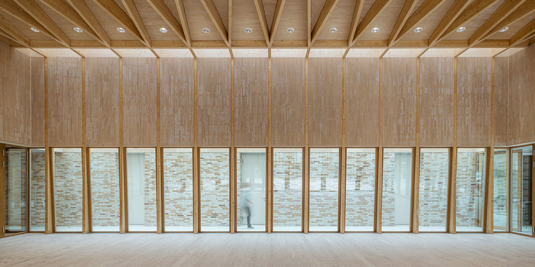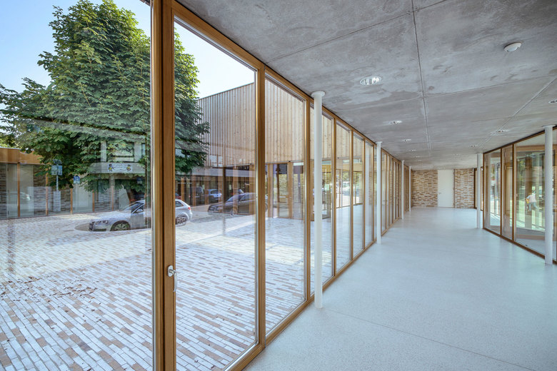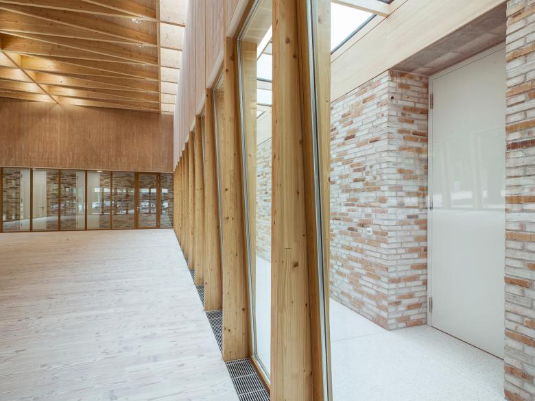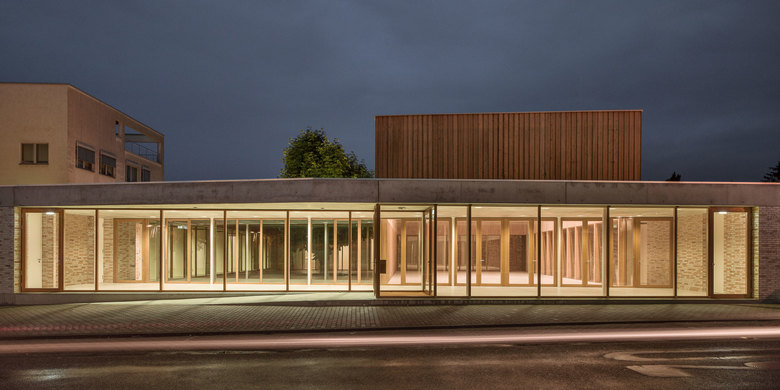 Der neue Gemeindesaal und ein Innenhof gleicher Größe bilden den Mittelpunkt, das ‚Herz’ des neuen evangelischen Gemeindezentrums der Petrusgemeinde. Damit wird auch räumlich dokumentiert, dass die Gemeinschaft im Mittelpunkt des Gemeindelebens steht. Ringförmig liegen alle Nutzungen des Gemeindezentrums um diese neue Mitte, die so zentrales, ordnendes Element ist.