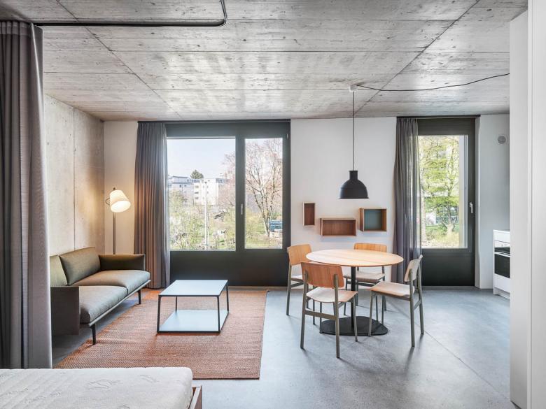 Das Grundstück befindet sich in der Nähe des Bahnhofs Bümpliz Nord, direkt an der Kreuzung zwischen Bümpliz- und Schwabstrasse. Das vierstöckige Gebäude mit 22 Studio-Wohnungen und einem Gemeinschaftsraum ist typologisch als kompakter Körper konzipiert, welcher mit klaren Facetten auf die heterogene Umgebung reagiert.