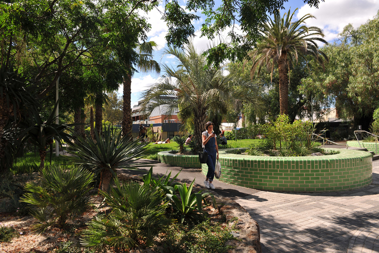 Widened footpaths across Greville Street aim to re-encourage equitable social exchange through outdoor café dining, casual seating mixed with planting, and footpath trading zones. A new focus on diverse planting reprioritises the pedestrian and allows for the proverbial pause, with moments to reflect, unwind, or simply Instagram under the catenary lights.