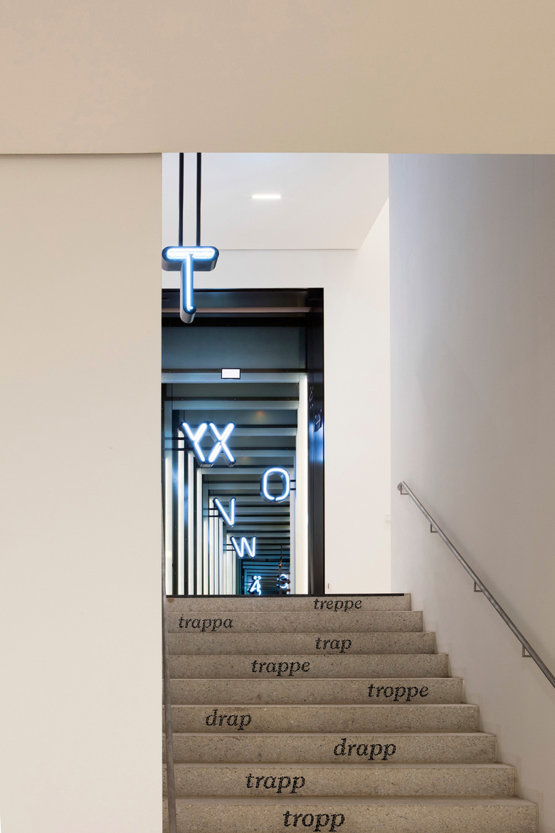 Im Inneren entstehen dabei Spit-Level-Ebenen, die sich um einen zentralen Auftaktraum gruppieren und im spannungsreichen Dialog die einzelnen Themenschwerpunkte der Ausstellung präsentieren. Der Besucher erfährt einen Ort, der Zwischentöne schafft und sich der komplexen deutschen Sprachwissenschaft und der bedeutenden grimmschen Märchensammlung widmet. Das Foyer mit Kasse, Museumsshop und Wartebereichen durchzieht das Gebäude als langgestreckter Raum und endet in einem lichtdurchfluteten Café mit Panoramablick auf die Kassler Karlsaue und Südstadt.